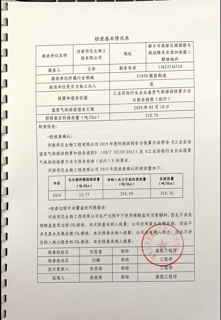2019年温室气体排放核查报告公布